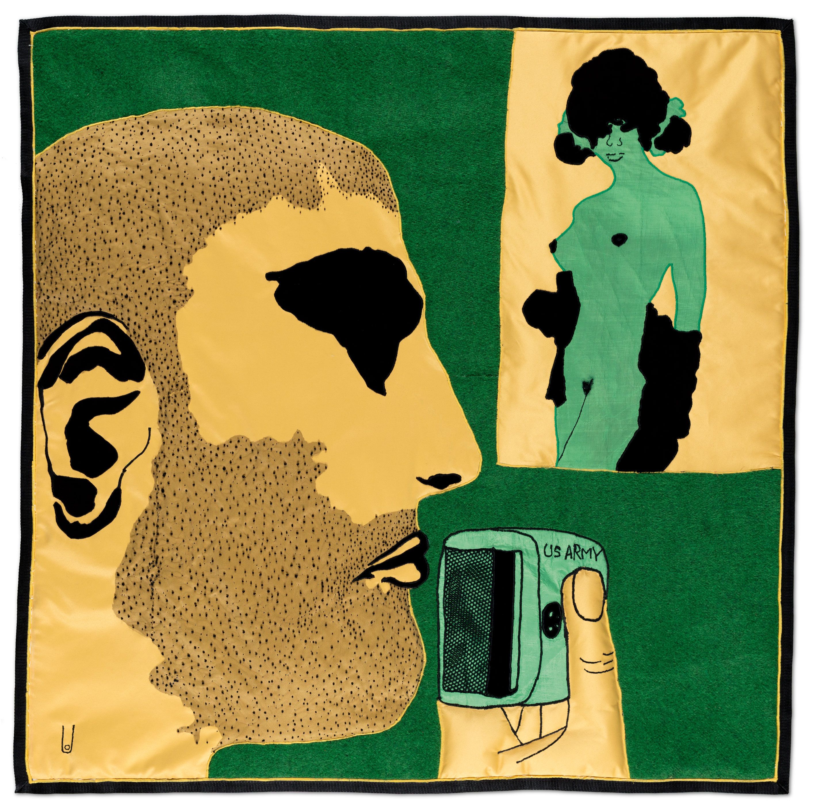 Paris Calligrammes is my personal memory landscape of this time, translated into the spatial. Photos, films, newspaper cuttings, sounds and music have been combined to create a dense assemblage of memory fragments. Their integration into an urban structure composed of soft textiles tells of the changes that the past undergoes on the path of memory. Streets with Pop Art paintings—in which I engaged with war and consumer culture—translated into fabric collages, point the way to spaces which were important fixed points for me: With Fritz Picard, the book dealer of the Librairie Calligrammes, and Walter Mehring, the sharp-tongued exiles, you enter my Parisian world of books. In the Parc Colonial you encounter the traces of French colonial history, or you follow Pierre Bourdieu and Ré Soupault on their precarious journeys to Algeria and Tunisia. Wherever you start or finish your little stroll there is one thing you should not miss: In the streets around today’s Gare du Nord you can observe the art of plaiting hair in the best hairdressers in the district; the results are also modern figure poems, in which history and the present, art and political statement condense.