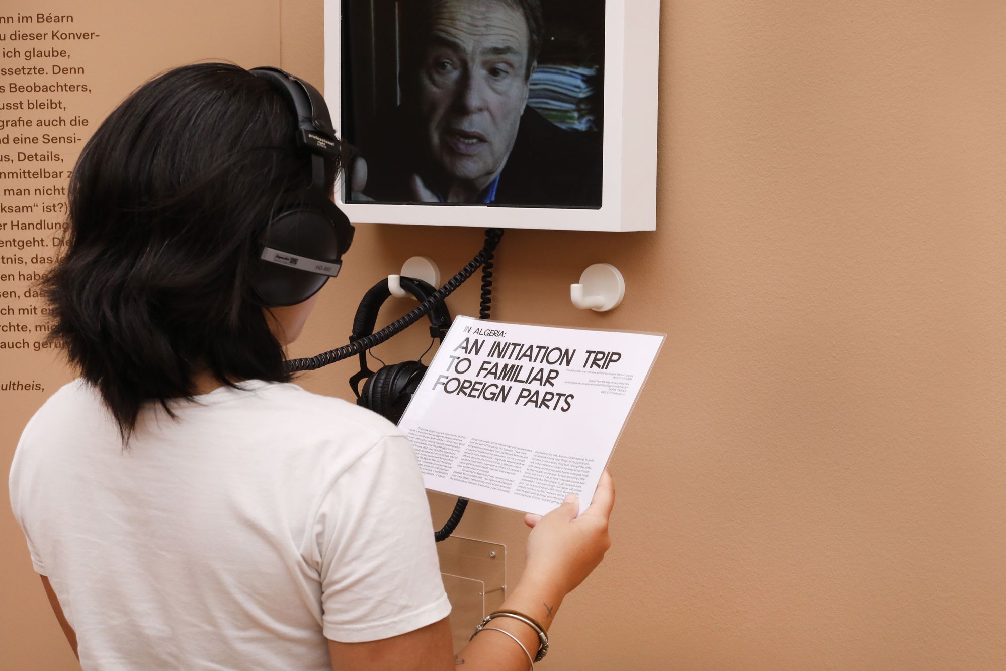 „Through this exhibition’s eponymous video, Paris Caligrammes (2019), filmmaker and photographer Ulrike Ottinger charts her time in the French capital as an artist during the 1960s. Combining archival footage with her own material, she meanders poetically through the city at a time when the discrepancy between postwar utopian ideals and people’s lived experiences was such that tension and unrest were fermenting. While viewers can sense the effects of World War II, the Algerian War (1954–62) and the 1968 student protests, they are also introduced to the Librairie Calligrammes – a meeting place of exiled German intellectuals – as well as the Cinémathèque françai- se, where the artist herself fell in love with film.“