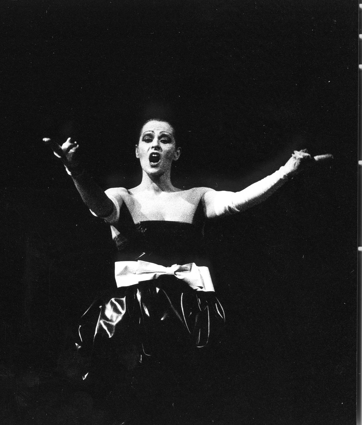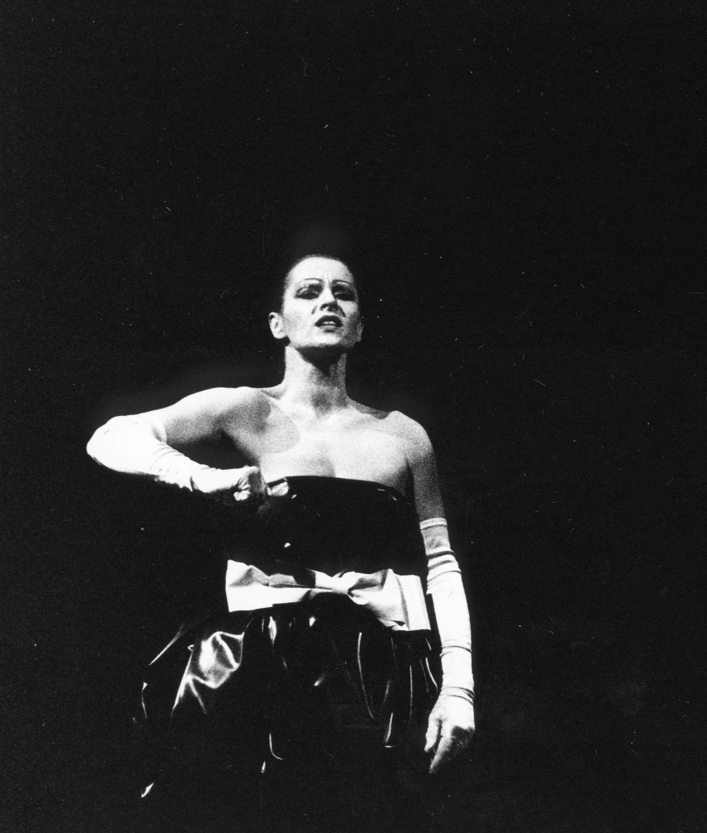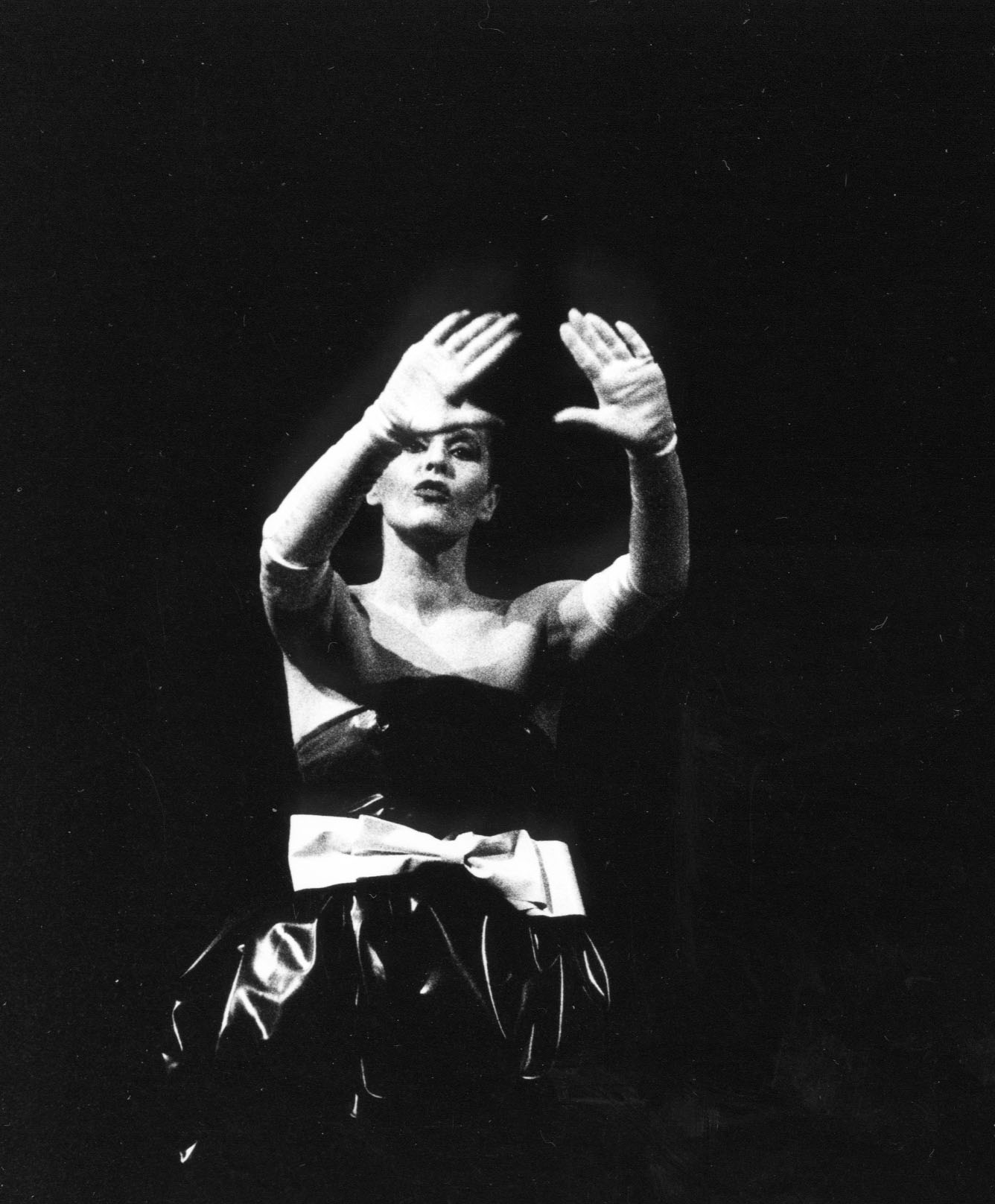 Davor die Stumme Rednerin. Gestikulierend liest sie (die Gehörlose Ingeborg Podehl) Wort für Wort nach vorn...