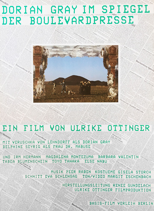Der Titel legt die Karten auf den Tisch. Es geht um ein Spiel, in dem eine Figur mit Methode und Medium verstrickt wird. So beginnt keine Geschichte, wie sie das ‚Leben‘ erzählt, das im Film gerne behauptet, ungeschönt in den Alltag zu greifen und Rohstoff auf die Leinwand zu bringen. So beginnt eine Geschichte der Kunstfertigkeit, die sich in jedem Augenblick bewußt ist, daß sie einen ‚Film‘ erzählt. Nicht die Geschichte ist hier der Rohstoff, sondern Ton und Bild. Ottingers Filme sind Ausdruck des Prekären im Maße, wie sie immer auch ihre Kunstfertigkeit betonen. Bei Fritz Lang war Mabuse ein Mann, ein Falschspieler, ein Falschgeldproduzent. Bei Ulrike Ottinger mutiert Mabuse zur Frau und Bewußtseinsproduzentin, die nichts als den Schein in Umlauf bringt und am Ende sich mit der Phantasmagorie der vollkommenen Herrschaft über ihr Medienprodukt Dorian Gray betrügt. Eine Gefangene des eigenen Wahns, ein Opfer technisch angezettelter Gefühle, die nicht länger dauern als es braucht, ein Fernsehbild abzutasten. Die Meisterin wird Opfer ihres Meisterschülers, und der Meisterschüler avanciert zum Meister des Medienkonzerns […]