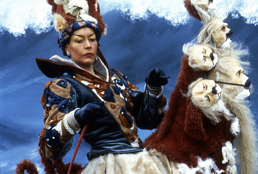 In der christlichen lkonographie treten die Sünden, von ‚Superbia‘ bis ‚Voluptas‘, als Frauen auf. ‚Sieben Frauen – Sieben Sünden‘ ist auch eine Abrechnung mit der allegorischen Rolle des weiblichen Körpers. In Ulrike Ottingers Beitrag ‚Superbia‘, der den Reigen eröffnet, wälzt sich der Triumphzug des Bösen an der Kamera vorbei, Gestalten mit Drachen- und Pfauenleibern, Giraffenköpfen, Panzern und Peitschen: