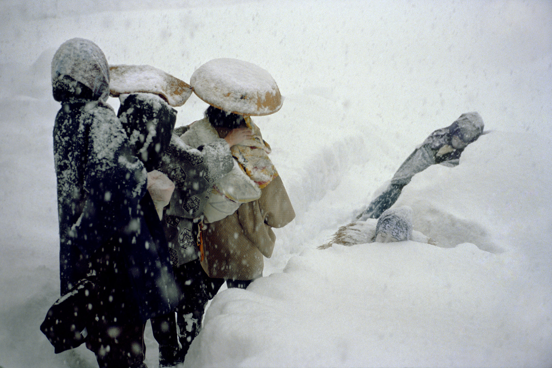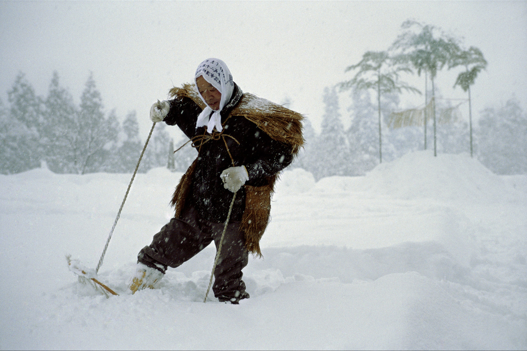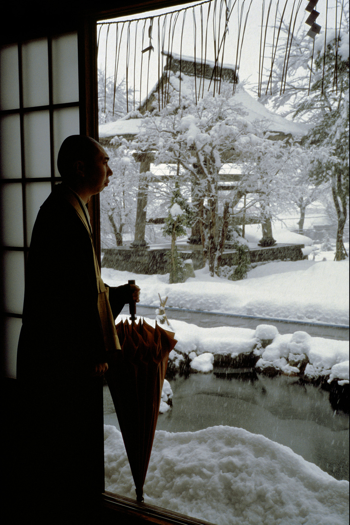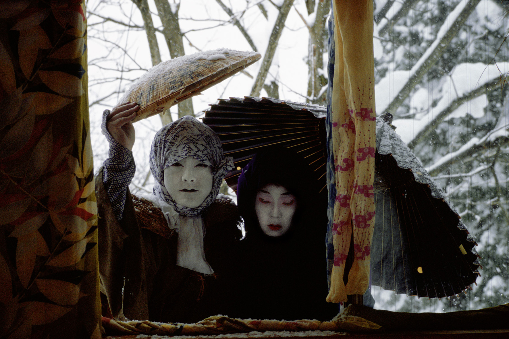 Diese lange und intensive Beschäftigung mit dem Asiatischen durch das Medium des Films, von der Recherche über das Drehen und die Zeit der Reflektionen beim Schnitt, erklärt warum ich mir das verwandte und doch neue Thema UNTER SCHNEE nicht entgehen lassen konnte. Ausgelöst wurde mein Interesse durch ein japanisches Buch, das im letzten Jahrhundert Furore machte, und das die Lebensbedingungen der Menschen im Schneeland beschrieb, an denen sich bis heute kaum etwas verändert hat. An der Sibirien zugewandten Gebirgsküste Japans schneit es sehr häufig, und alles liegt ein halbes Jahr unter einer meterhohen Schneedecke. Die Bewohner dieser Region mussten ganz neue Lebensweisen, auch Überlebensstrategien entwerfen. Dies ist ihnen auf oft verblüffende Weise gelungen, sogar ohne auf ihre Feste, Rituale und sonstige Annehmlichkeiten zu verzichten. Alle Aktivitäten sind über oder auch unter den Schnee verlegt, und selbst ein Kabuki-Theater mit dem Blumensteg zum Auftritt der Stars wird aus Schnee gebaut. Bei diesem Stoff ist es so, dass in ihm fast all meine Interessen kulminieren, östliche Theaterformen wie Kabuki, No oder Bunraku, Musik, atemberaubende Landschaften, kreative Menschen, welche unter erschwerten Bedingungen ihren Alltag meistern und sich zusammenfinden, um gesellschaftlich und künstlerisch zu arbeiten.