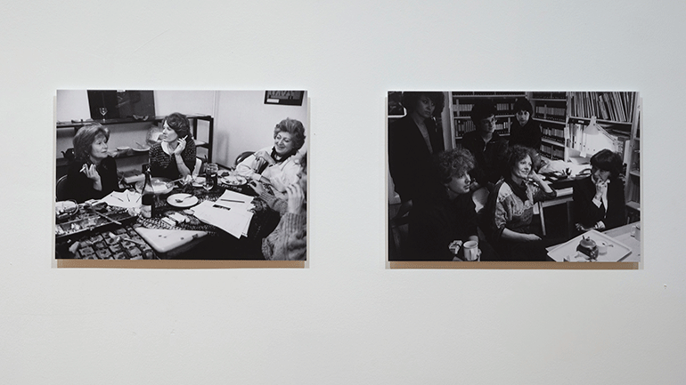 Picture: Micha Dell-Prane, Delphine Seyrig and Ioana Wieder holding a camera during a demonstration, 1976. B&W photography. Courtesy of Centre audiovisuel Simone de Beauvoir