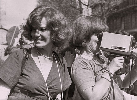 Picture: Micha Dell-Prane, Delphine Seyrig und Ioana Wieder halten eine Kamera während einer Demonstration, 1976, Courtesy Centre audiovisuel Simone de Beauvoir, © Micha Dell-Prane