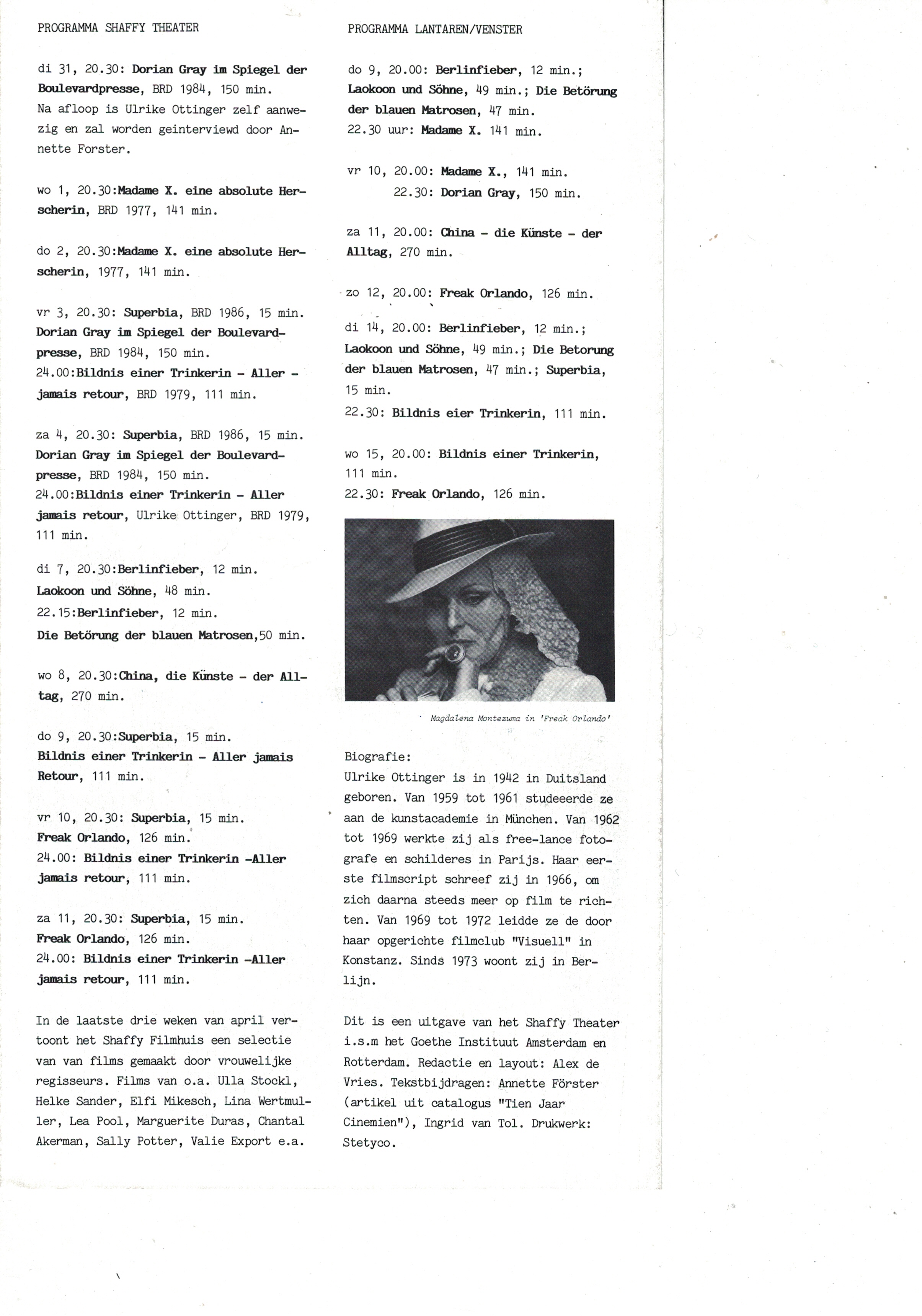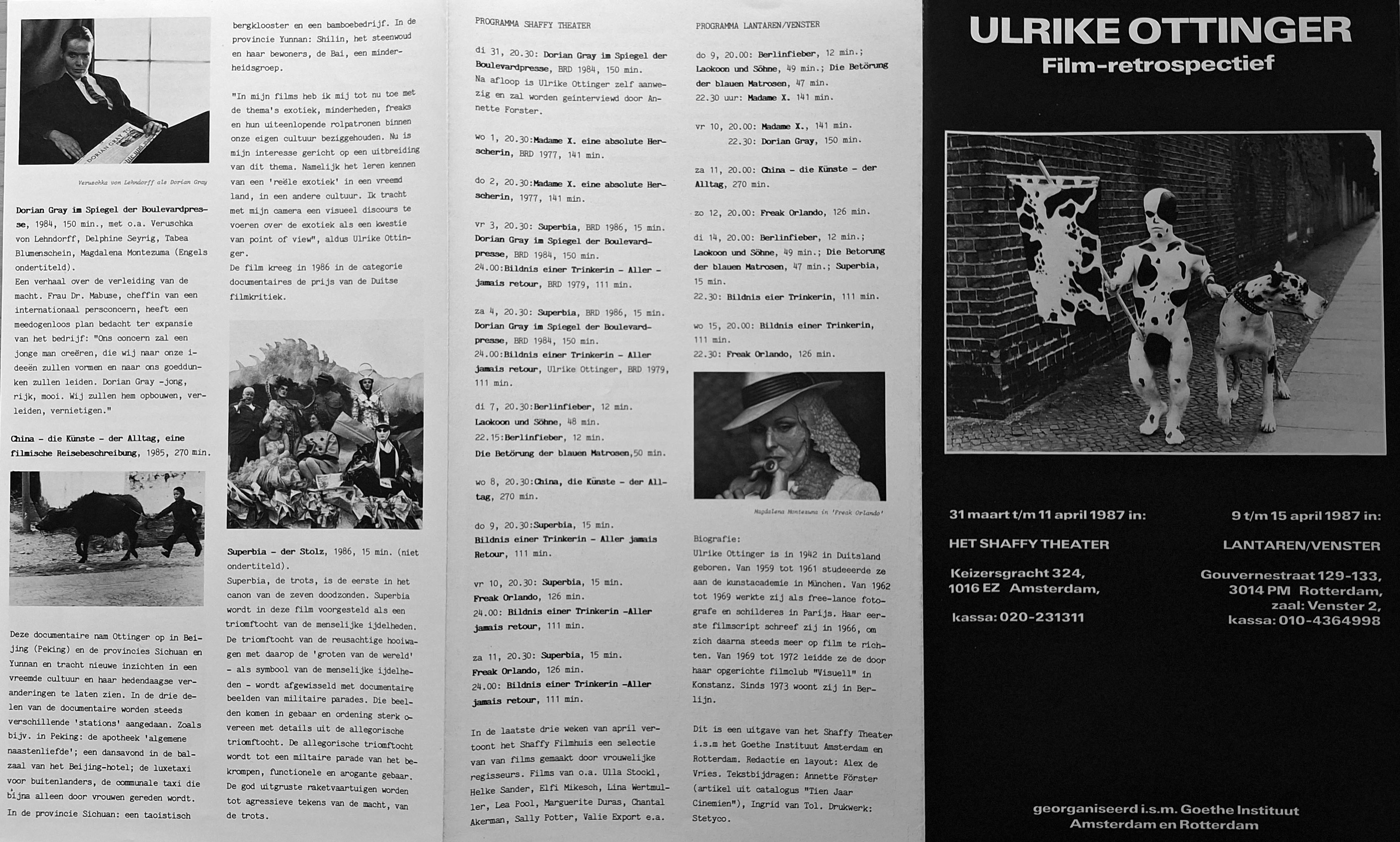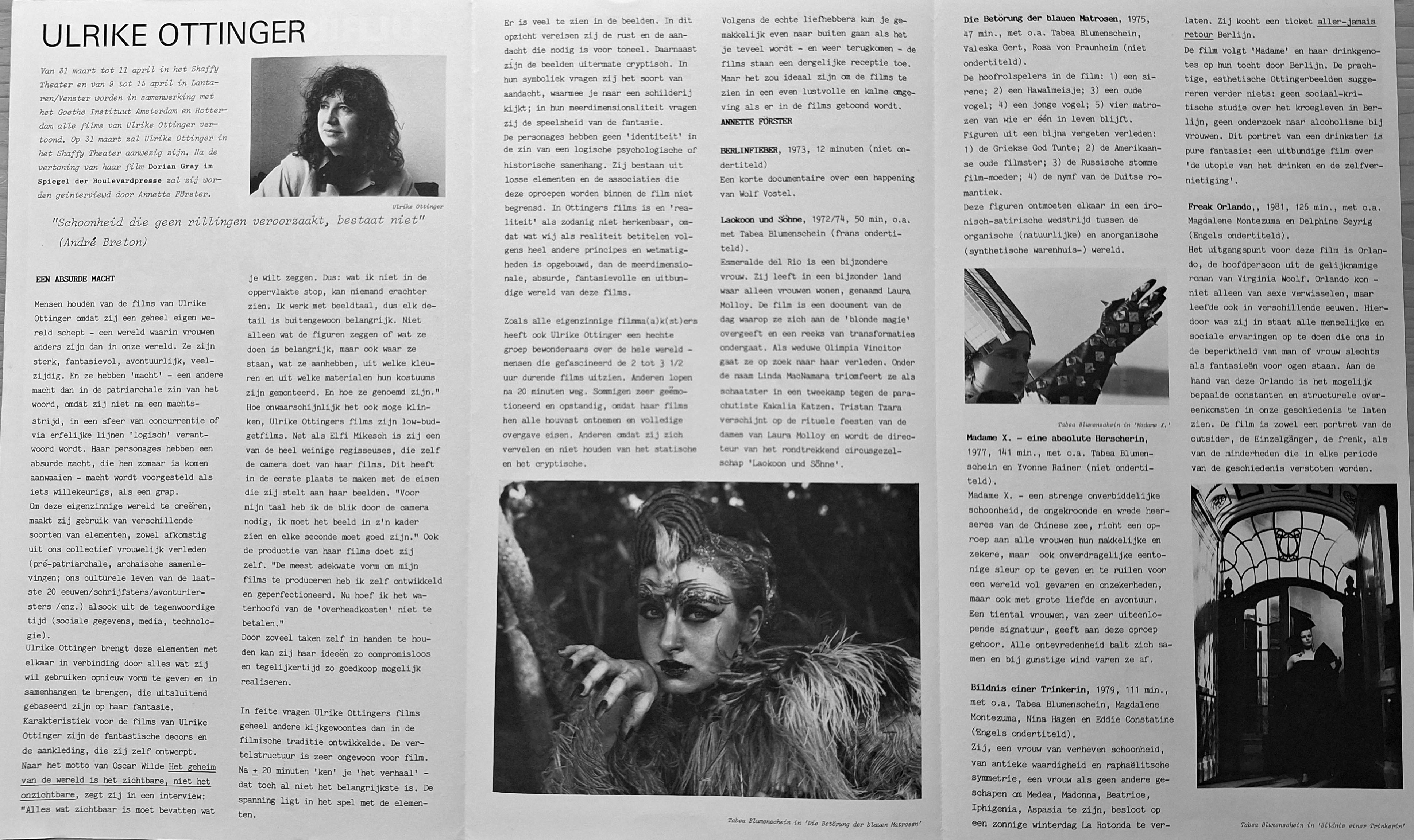 ← ULRIKE OTTINGER FILM RETROSPECTIVE / Cinémathèque française, Paris (1990)
