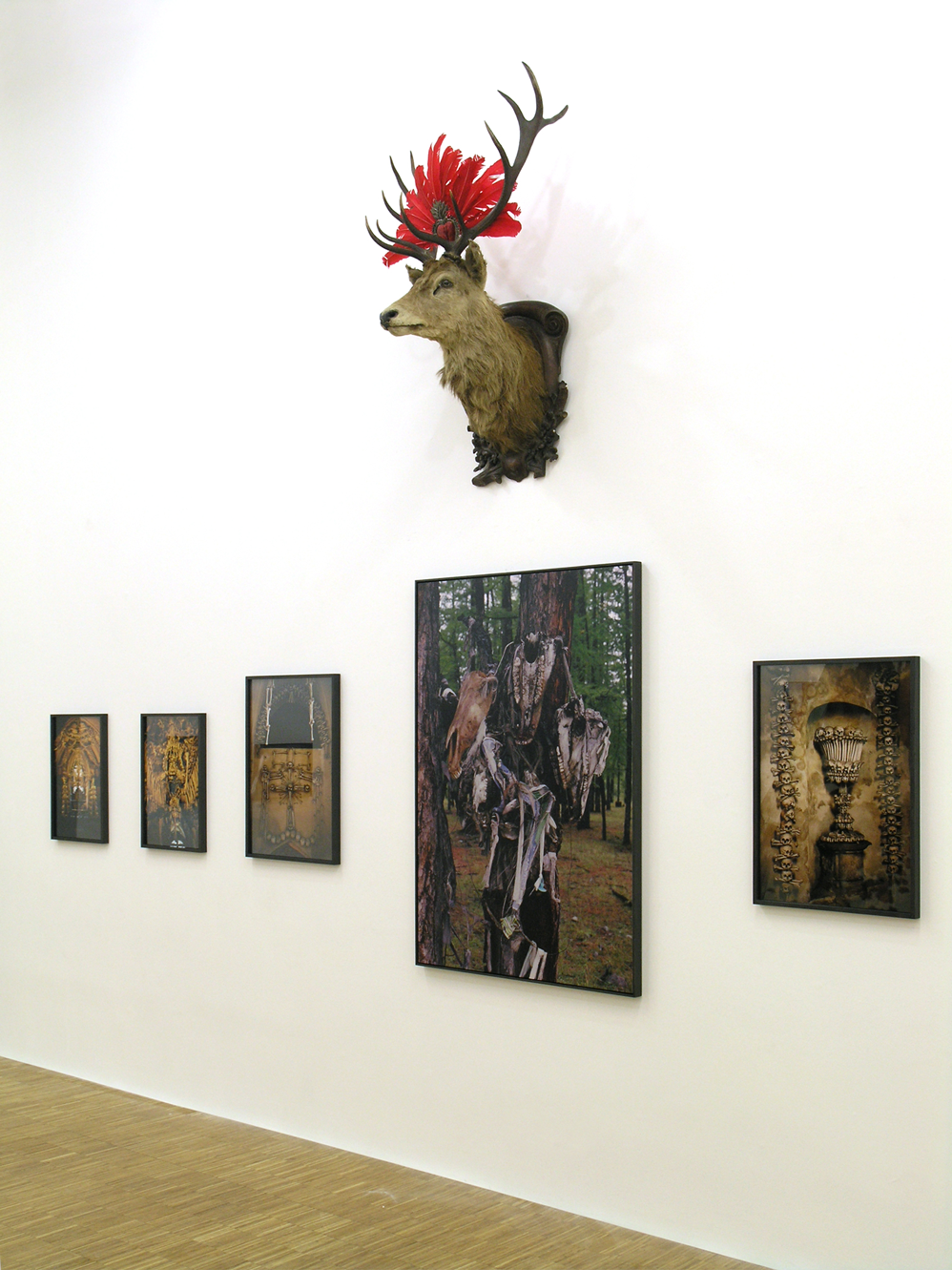 Die Ausstellung vereinte Motive unterschiedlichster Kulturen und sozialer Kontexte, die um Todes- und Auferstehungsfaszination kreisen. Jenseits eines wissenschaftlich-ethnographischen Zugangs inszenierte die Künstlerin im Großen Saal des Salzburger Kunstvereins eine Zusammenschau ritueller Praktiken divergenter kultureller Herkunft. So hat die Künstlerin 1991 bei ihrem Besuch in der Taiga an Seancen weiblicher Schamanen teilgenommen und diese fotografisch und filmisch aufgenommen. Zudem sind Bilder aus dem Umfeld von San Antonio/Texas zu sehen, wo sie an Kirchenfesten und Charreadas teilgenommen und den Prozess der Hybridisierung der deutschen, spanischen, indianischen und anglo-amerikanischen Kultur untersucht hat. Spanische Osterprozessionen und die Dokumentation der von Frantisek Rindt in den 1870er Jahren aus menschlichen Knochen gestalteten Kapelle in Tschechien bildeten weitere Bestandteile der Schau. Diese Elemente wurden konterkariert und gebrochen durch inszenierte Fotografien aus den Kontexten ihrer Filme Freak Orlando und Dorian Gray im Spiegel der Boulevardpresse. Im Zentrum aber stand die Installation des Europa-Zelts, welches das Motiv des Raubes der Europa durch Zeus in der Verwandlung als Stier in unterschiedlichen künstlerischen Umsetzungen von der Antike bis zur klassischen Moderne durchspielt. Ulrike Ottinger ging es bei dieser Ausstellung nicht um eine Homogenisierung unterschiedlicher ritueller Praktiken, sondern um einen Zugang, der, wie Victor Segalen bereits im frühen 20. Jahrhundert in seinen „Schriften zum Exotismus“ anregte, jenseits einer Assimilierung auf eine Anerkennung kultureller Differenz zielt. Ottinger thematisiert existentielle Fragestellungen und ihre vielfältige Repräsentation und Brechung und stellt sich somit ihrer Verdrängung und Tabuisierung entgegen. Im August zeigte das Salzburger Filmkulturzentrum DAS KINO in Kooperation mit dem Salzburger Kunstverein eine Retrospektive von Ulrike Ottingers Filmen, die den Zeitraum von 1973 - 2004 umfassen wird. (Excerpt from: Homepage Salzburger Kunstverein)