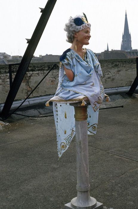 | Helena Müller as Goddess of the Tree of Life Announcer at the department store Mother of the Miraculous Birth Helena-Maya Siamese sister Lena Bunny Helena |
