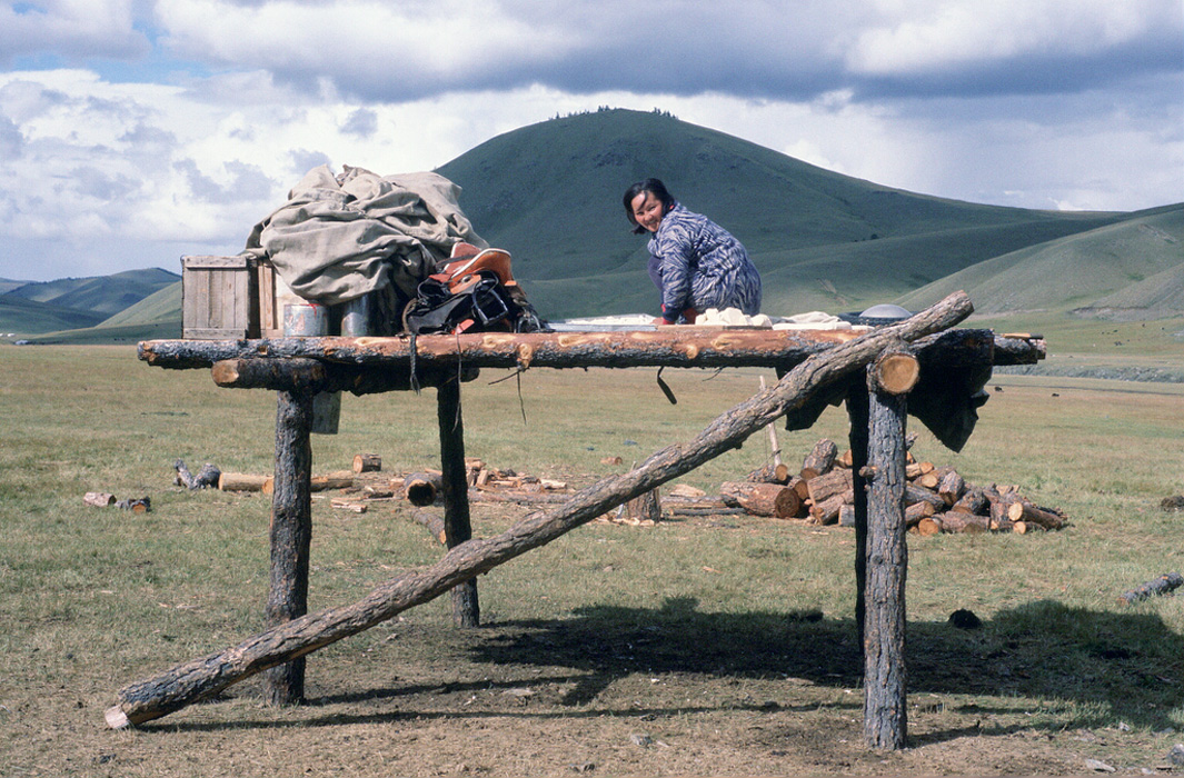 Die Resultate der Expedition sind atemberaubend, nicht nur weil sie das ,ganz andere‘ dokumentieren, sondern vor allem, weil sie so schön sind. Vor den Augen der Fremden tun sich eine grandiose Welt und ihre angemessenen Lebensformen auf. Die Kamera schwenkt und schwenkt und schwenkt wieder; wie Rollbilder entfalten sich diese Landschaften in ihrer nordisch anmutenden dezenten Farbigkeit; die Kamera ,liest‘ das Hochplateau der Darchad vorwiegend ,europäisch‘ von links nach rechts. Auch bei den lnnenaufnahmen schweift das Kameraauge sanft und ruhig umher, von den Tönen dirigiert, die zuerst ausserhalb des Bildausschnitts laut werden. Von der Schamanin auf die Teilnehmer ihrer Séance und wieder zurück auf die Frau, die ihre Trommel schlägt, in Zungen redet und Anweisungen für die notwendigen Opfer gibt. Vom Stiefelmacher auf seine Frau, die Milchschnaps destilliert, und wieder zurück. Ein Jahr braucht der Stiefelmacher für ein Paar. Warum soll da ein Film nur 90 Minuten dauern?